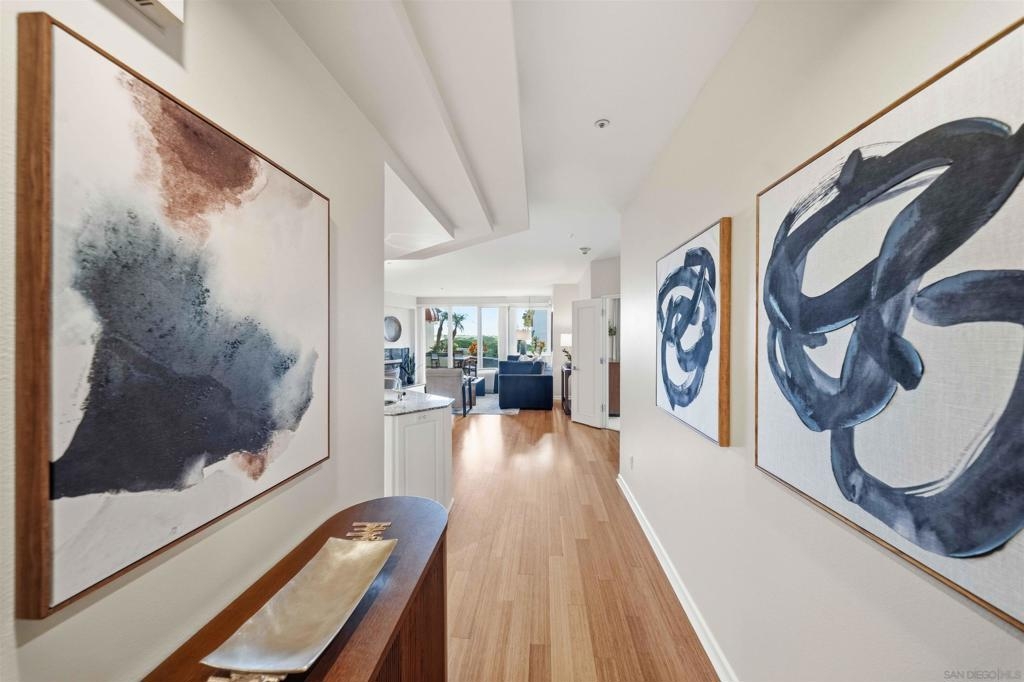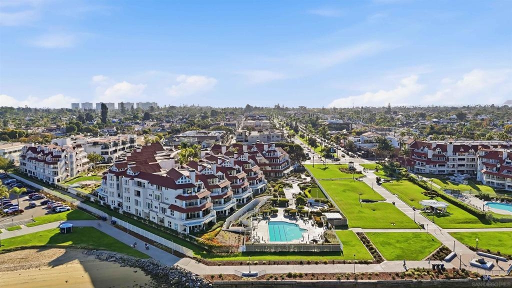 Welcome to Coronado Point—one of Coronado Island’s most coveted bayfront addresses—where sophisticated design meets effortless coastal living. This rarely available first-floor residence captures tranquil San Diego skyline and bay views, offering a seamless blend of comfort and style across approximately 1,849 square feet with two bedrooms and 2.5 baths. Three separate and exclusive outdoor patios allow incredible opportunities to entertain, unwind, or simply catch breathtaking views and fresh air. The heart of the home is a chef’s kitchen featuring a Sub-Zero refrigerator, Dacor cooktop, granite countertops, and abundant storage—ideal for both everyday living and entertaining. Open-concept living and dining spaces, thoughtfully styled to enhance flow and natural light, extend effortlessly to a generous patio with bay and downtown vistas, while a cozy gas fireplace adds warmth and ambiance. The primary suite offers private patio access and a spa-like bathroom retreat, while the additional bedroom provides flexible space for guests or a home office. Residents of Coronado Point enjoy resort-style amenities including a bayside pool and spa with BBQ, a well-equipped fitness center, private storage, and two secured parking spaces. Just outside your door, enjoy Tidelands Park, scenic waterfront paths, gourmet dining, and boutique shopping—all within an easy stroll. Whether you’re seeking a full-time coastal residence or a refined lock-and-leave getaway, this move-in-ready home offers an exceptional combination of privacy, convenience, and iconic Coronado charm.