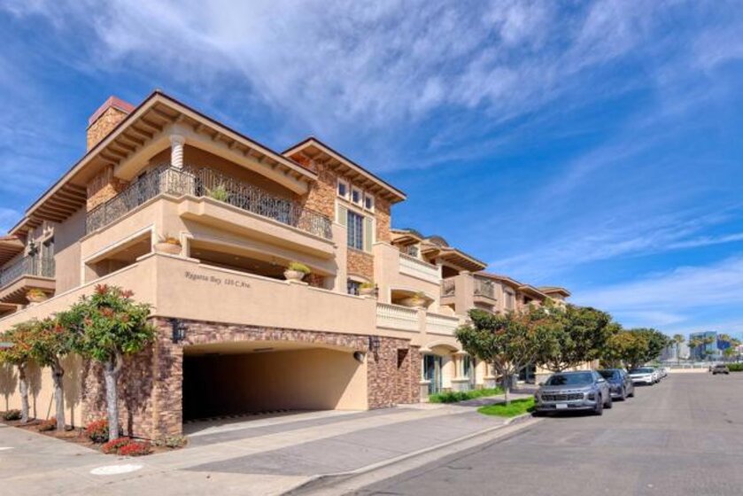 Luxurious single level unit in coveted Regatta Bay, this well appointed Coronado get away has been lovingly cared for and maintained. Boasting high end finishes throughout, including beautiful hardwood floors and crown molding, gourmet kitchen with Viking appliances, a 6 burner gas range, 2 ovens, warming drawer, wine fridge, and designer tile and stone work in both baths. There is a spacious and private deck with separate accesses from both the main living area and master bedroom, complete with built-in BBQ and sink. This complex is perfectly located and just a short 1/2 block walk to fine dining, shopping and the ferry landing. Owner would like to sell furnished.