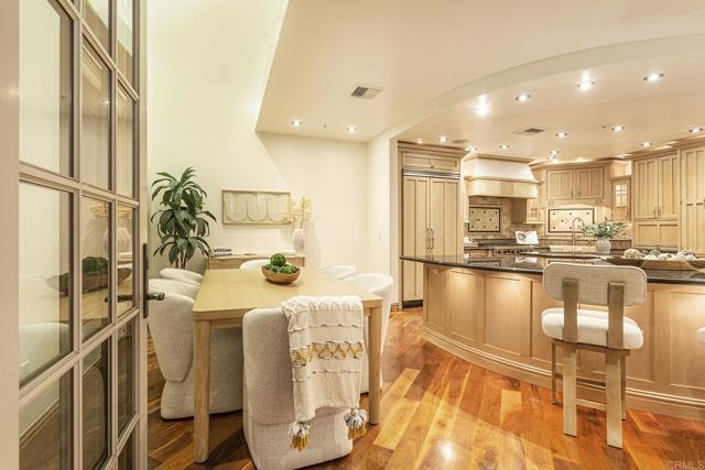 Discover unparalleled coastal elegance in this stunning 2-bedroom, 2-bathroom condominium, spanning an impressive 2,234 square feet in the prestigious enclave of Coronado, California. Designed for discerning individuals, this residence seamlessly blends luxurious beachside living with sophisticated comfort, offering a lifestyle of refinement and ease. Step inside to find soaring vaulted ceilings and gleaming hardwood floors that create an airy, open ambiance. The gourmet kitchen, equipped with premium Viking stainless steel appliances, is a culinary masterpiece, perfect for hosting intimate gatherings or grand soirées. The expansive living area flows effortlessly onto a large covered balcony, where sweeping views of the iconic Coronado Bridge and the dazzling downtown San Diego skyline provide a breathtaking backdrop for morning coffee or evening entertaining. This residence lives and feels like a detached home, offering the privacy and space coveted by those accustomed to the finest standards of living. The gated subterranean garage includes two assigned parking spaces and a separate storage locker, ensuring convenience and security. Every detail of this home exudes coastal sophistication, from its thoughtful design to its premium finishes, making it an ideal retreat for families seeking both luxury and functionality. Nestled in the Village of Coronado, this condominium places you steps from the ferry landing, pristine beaches, world-class dining, and the vibrant charm of this coveted coastal community. Elevate your lifestyle in a home that embodies comfort, prestige, and timeless beauty.