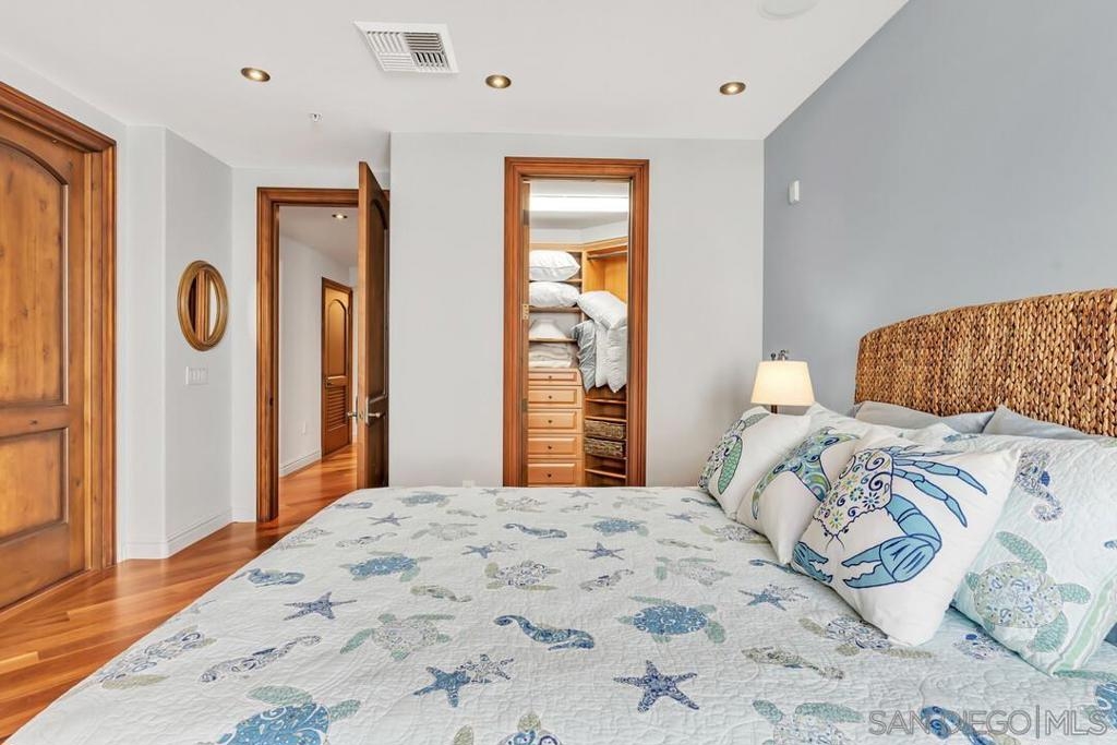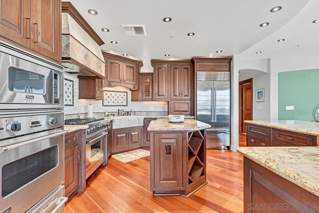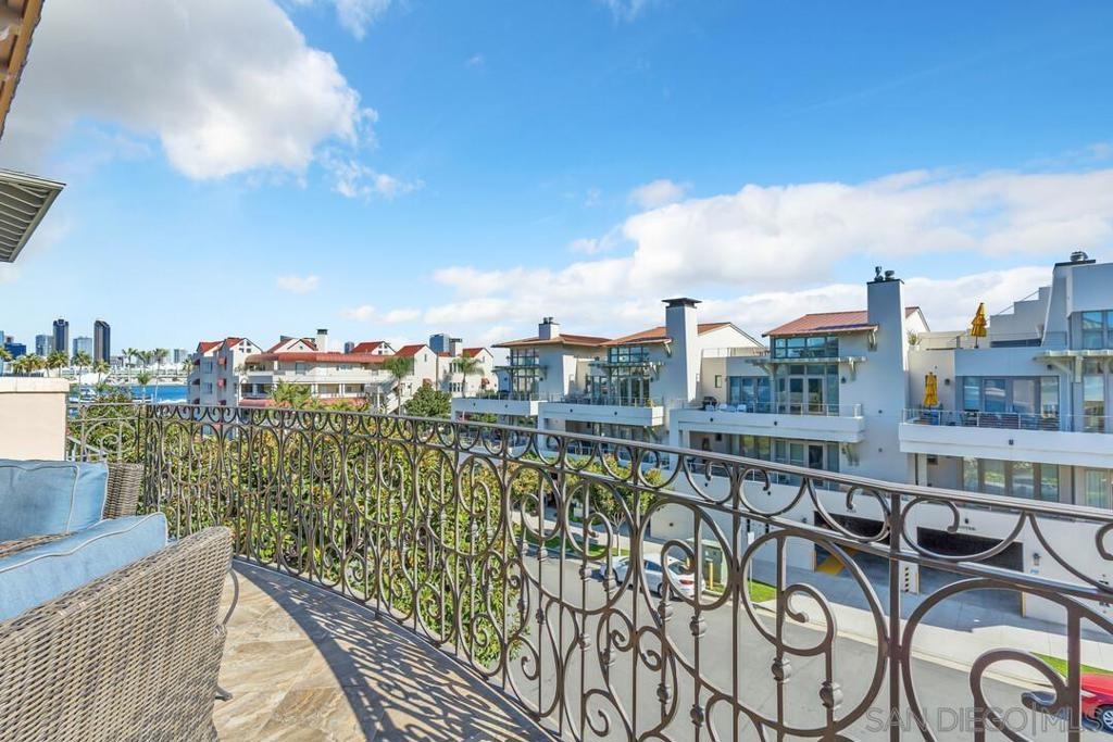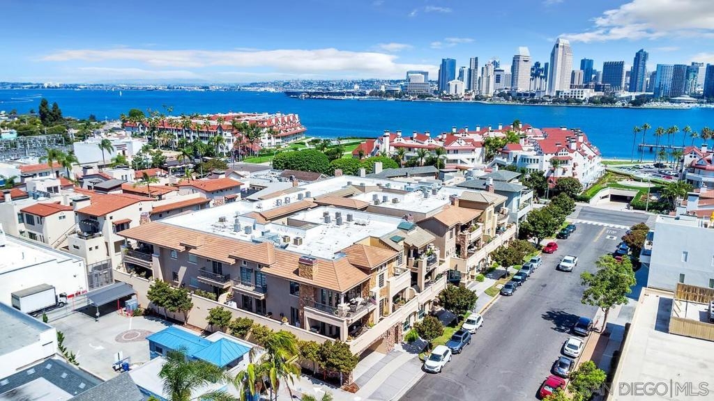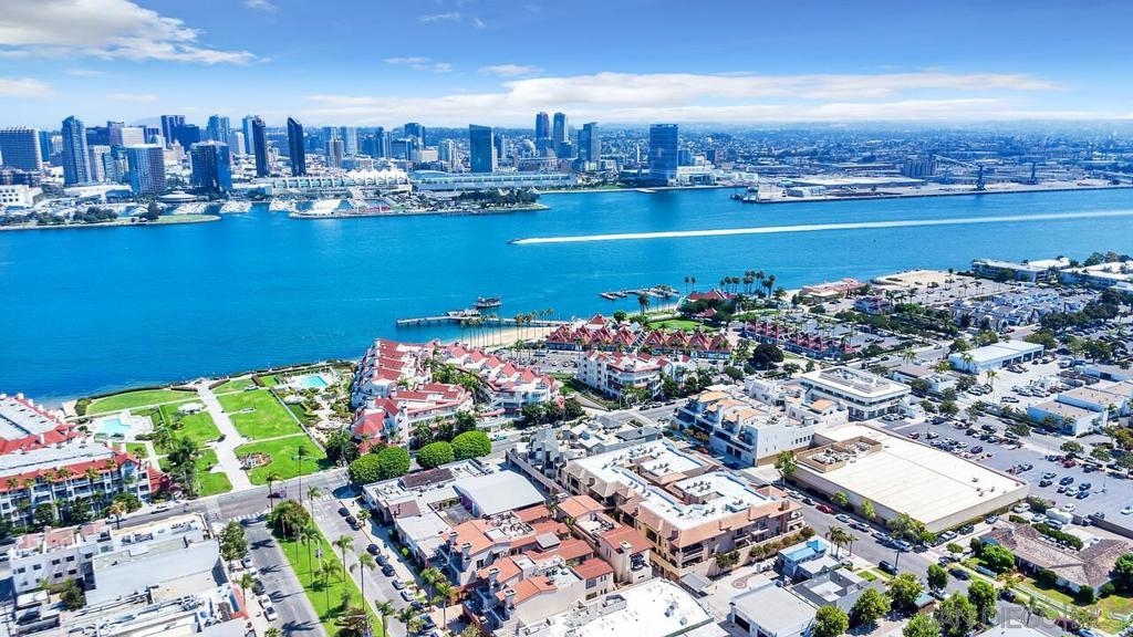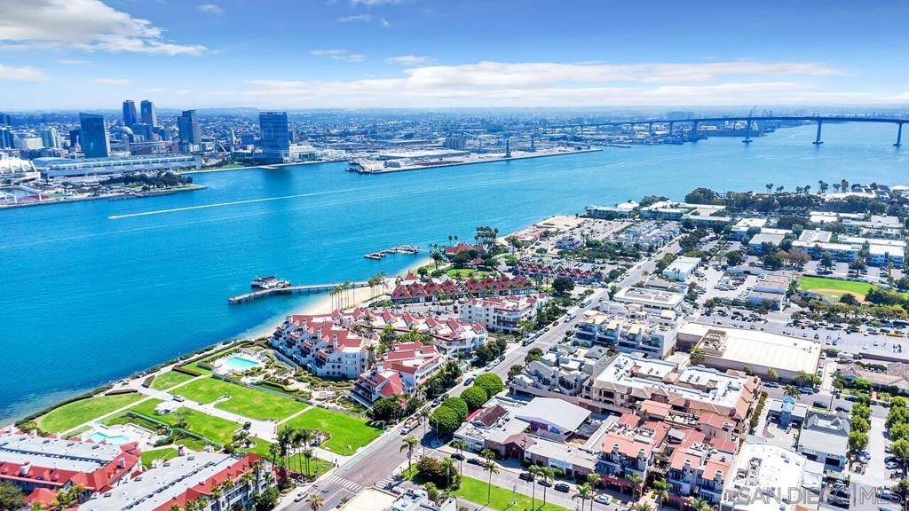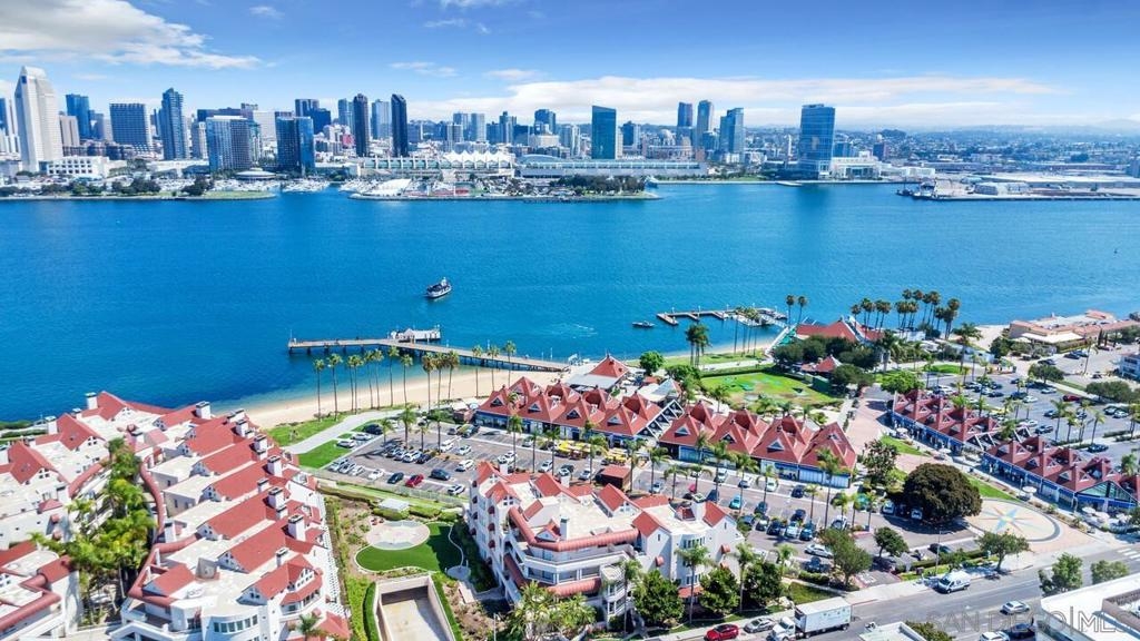Stunning corner Penthouse Luxury Condo with San Diego Bay and Skyline Views! Welcome to this exquisite 2-bedroom, 2-bathroom condominium in the highly sought-after Regatta Bay community, offering a spacious 2,136 sq. ft. floor plan with luxurious finishes throughout. This designer home features cherry hardwood flooring throughout, custom interior paint, and a gourmet kitchen equipped with Viking and Sub-Zero appliances, custom cabinetry, and a large island perfect for entertaining. The open-concept great room boasts vaulted ceilings, ample natural light, coastal ambience, a cozy fireplace, and an upgraded home theater system for the ultimate movie night The spacious primary suite is your personal sanctuary, offering a spa-inspired bathroom with dual vanities, a soaking tub, separate shower, and an expansive walk-in closet. Step outside onto your private, expansive patio, where you can unwind while taking in the mesmerizing views of the bay and downtown skyline. The built-in BBQ is perfect for al fresco dining and entertaining guests. Additional highlights of this luxury home include custom doors, crown molding, a large dining area with custom built-ins, and a state-of-the-art Lutron lighting system for the perfect ambiance at any time of day. With a dedicated laundry room and two parking spaces with electrical outlets, convenience and comfort are paramount. Sold fully furnished, this sophisticated home is move-in ready and offers the ideal combination of resort-style living and urban convenience. Located just moments from Coronado's beautiful bay, fine dining, and shopping!