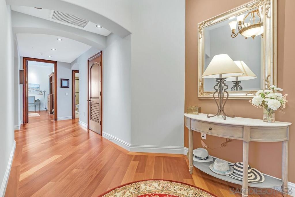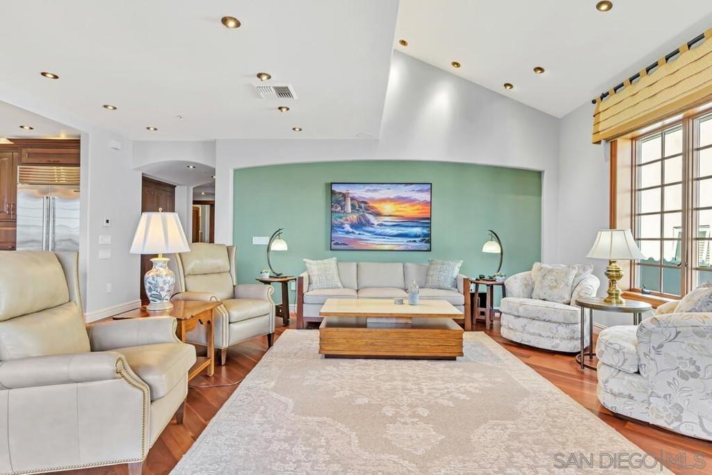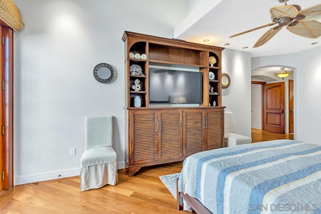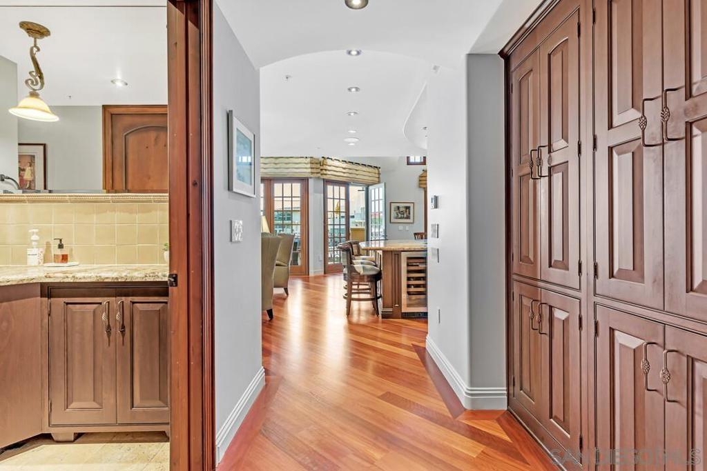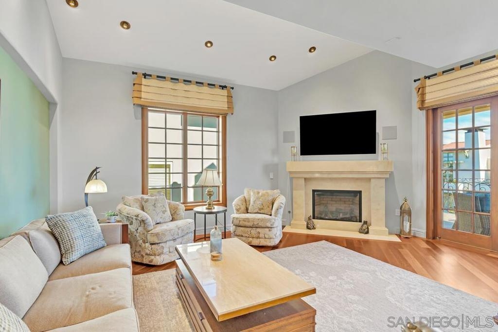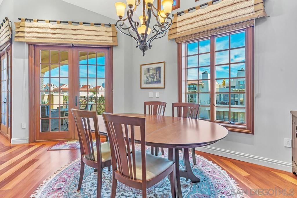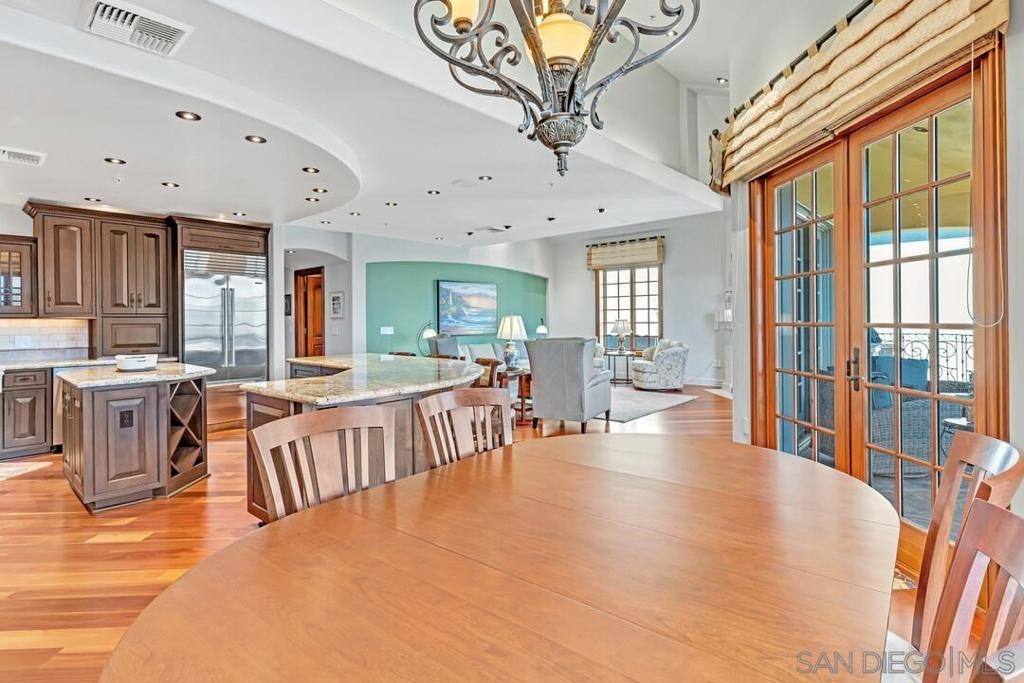 Stunning corner Penthouse Luxury Condo with San Diego Bay and Skyline Views! Welcome to this exquisite 2-bedroom, 2-bathroom condominium in the highly sought-after Regatta Bay community, offering a spacious 2,136 sq. ft. floor plan with luxurious finishes throughout. This designer home features cherry hardwood flooring throughout, custom interior paint, and a gourmet kitchen equipped with Viking and Sub-Zero appliances, custom cabinetry, and a large island perfect for entertaining. The open-concept great room boasts vaulted ceilings, ample natural light, coastal ambience, a cozy fireplace, and an upgraded home theater system for the ultimate movie night The spacious primary suite is your personal sanctuary, offering a spa-inspired bathroom with dual vanities, a soaking tub, separate shower, and an expansive walk-in closet. Step outside onto your private, expansive patio, where you can unwind while taking in the mesmerizing views of the bay and downtown skyline. The built-in BBQ is perfect for al fresco dining and entertaining guests. Additional highlights of this luxury home include custom doors, crown molding, a large dining area with custom built-ins, and a state-of-the-art Lutron lighting system for the perfect ambiance at any time of day. With a dedicated laundry room and two parking spaces with electrical outlets, convenience and comfort are paramount. Sold fully furnished, this sophisticated home is move-in ready and offers the ideal combination of resort-style living and urban convenience. Located just moments from Coronado's beautiful bay, fine dining, and shopping!