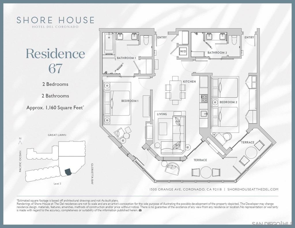 Coastal Luxury at The Shore House. Discover a rare blend of timeless elegance and modern indulgence within the iconic Hotel del Coronado. Perched atop the exclusive penthouse floor, Residence 67 commands breathtaking, unobstructed vistas of the Pacific Ocean, Glorietta Bay, and the shimmering San Diego skyline, creating a stunning tableau from sunrise to sunset. Crafted for the discerning homeowner, this impeccably designed 2 bedroom, 2 bath residence offers a sun filled open layout curated with elevated finishes throughout. The gourmet kitchen, appointed with top-tier appliances, serves as both a showpiece and a functional culinary space. Dual fireplaces, indoors and out, enrich the home with warmth and coastal ambiance. A generous private balcony extends your living area outdoors, inviting you to indulge in ocean breezes, al fresco dining, or serene sunset moments. Enjoy the privileges of full ownership paired with the freedom of a hassle-free rental program managed exclusively by The Del, allowing your residence to work for you while you’re away. This fabulous offering is full ownership with limited use.