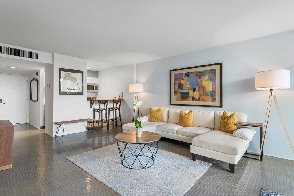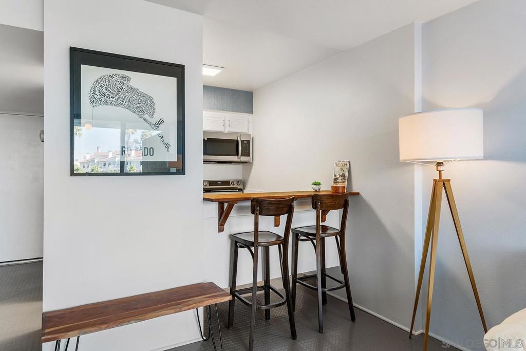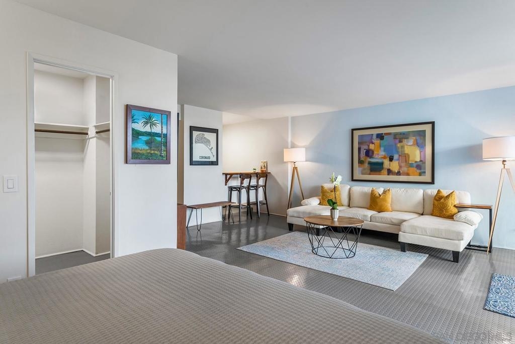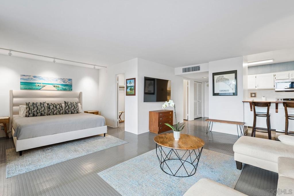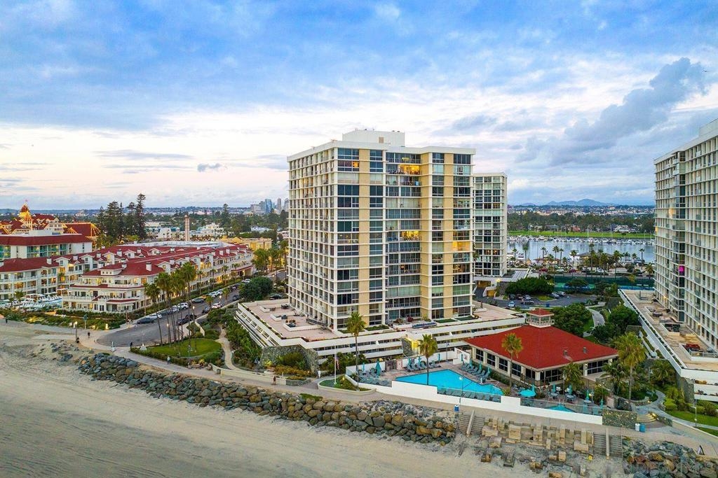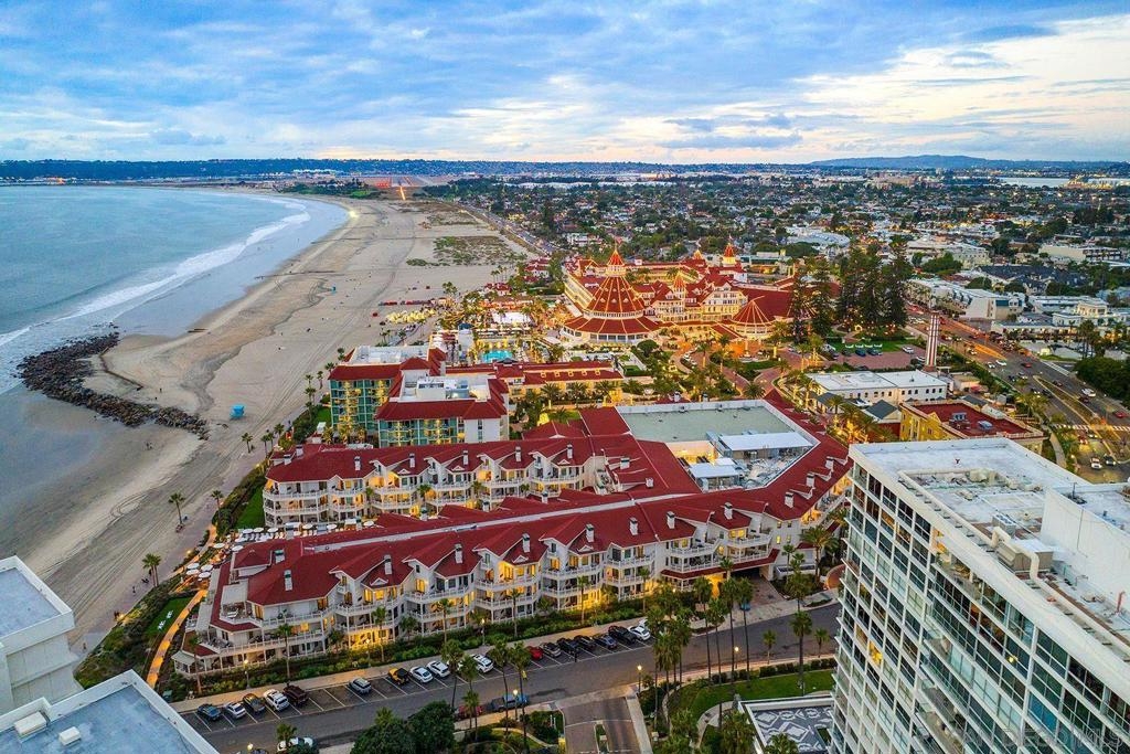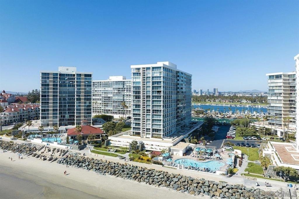 This exceptional unit offers a private and large terrace, breathtaking views of the iconic Hotel Del Coronado and a charming glimpse of the ocean! Spacious studio comes with an incredible opportunity to expand—the balcony can be pushed out, adding extra square footage and creating an even more open and versatile living space. Enjoy coastal living at its finest while still having the option to customize and maximize the potential of this prime location. Shores complex features security and 24-hr doorman service, 4 pools, fitness center plus spa, beach clubhouse, pickle ball & tennis courts. Just steps away to the ocean, a short walk to restaurants, shopping and more!