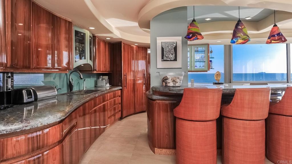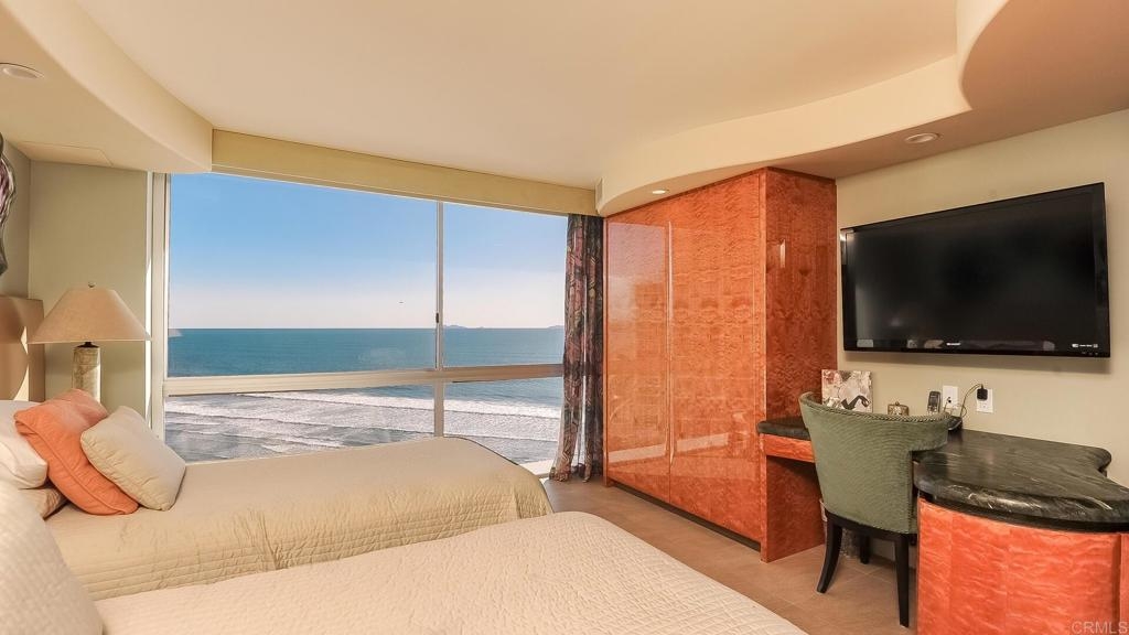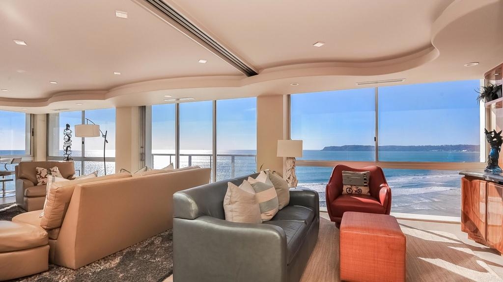 Welcome to the best Oceanfront corner unit at The Shores. This top Luxury condo in La Sierra has breathtaking views of the ocean Point Loma and the new Hotel Del. This 2 bedroom + den is custom made and includes a combination of Rosewood, Quilted Maple, Green Lacewood and Fiddle Ash. You'll also find Exotic Blue Louise, Vitoria Regia Satin, Capolavoro granite throughout. Automatic blinds and a state of the art media systems throughout.