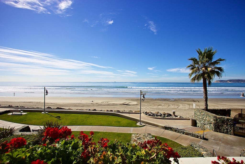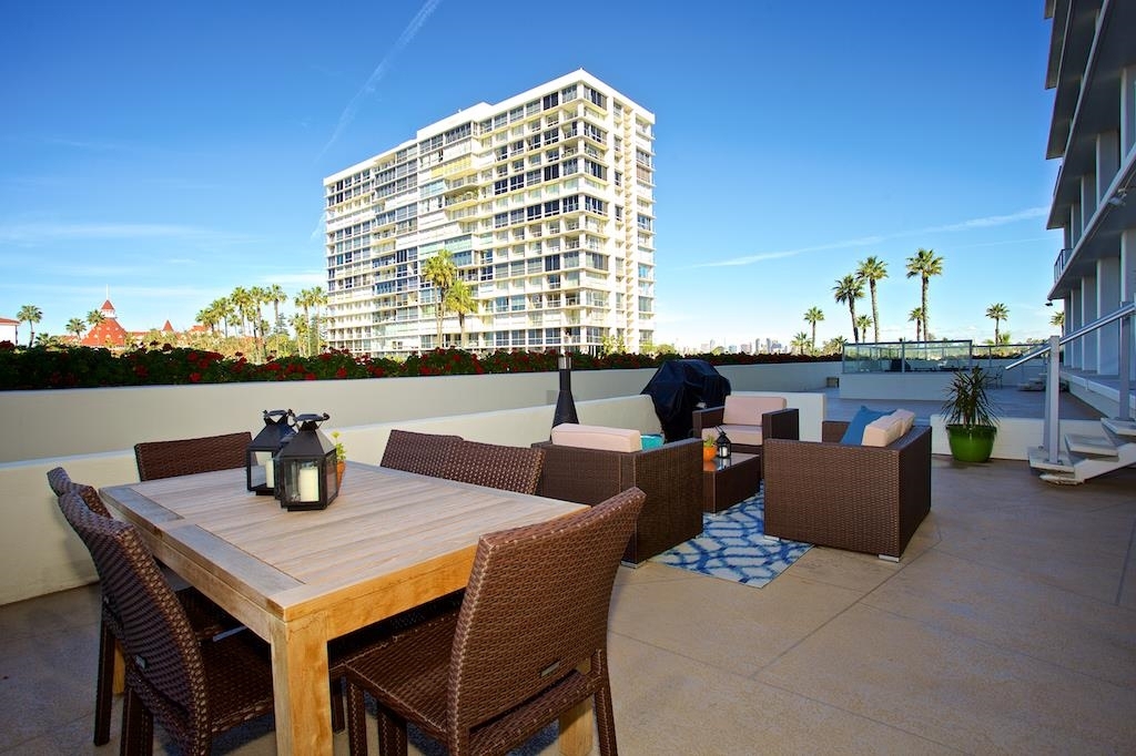 Stunning terrace level unit with water and bay views and a picture framed view of the Hotel Del! Remodeled in 2013, this spacious floor plan offers an ease of living which is characteristic of this resort lifestyle. Beach access out your back door, along with all the other amenities of the Shores. 8 tennis courts, 4 swimming pools, 2 clubhouses, workout facility. Enjoy your over sized patio and ocean breezes while you take in the sunset over dinner. Offered fully furnished. Neighborhoods: Coronado Shores Equipment: Fire Sprinklers,Garage Door Opener, Range/Oven Other Fees: 0 Sewer: Sewer Connected Topography: LL