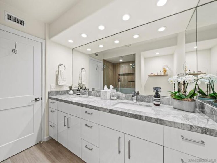 If you are a buyer seeking space, light, turnkey living, and panoramic views of the Pacific Ocean, Hotel del Coronado, the San Diego skyline, the bay, the golf course, and stunning sunsets, this home is for you. This corner residence features a thoughtfully designed layout and is offered fully furnished with high-end designer pieces. The interiors have been curated with exquisite craftsmanship and style. Highlights include hand-crafted woodwork in the living room and bar, custom trim in the hallway and primary suite, handmade tile in the kitchen and bathrooms, and designer wallpaper accents. The chef’s kitchen features all-new GE Café Signature Collection appliances. Additional upgrades include new windows, automatic blinds, new interior doors and casings, upgraded lighting and sconces, and a new washer and dryer. Located in La Princesa, the newest and recently remodeled tower at The Shores, this one-of-a-kind home is complemented by beautifully renovated modern lobbies and hallways, offering a refined balance of classic elegance and coastal charm.