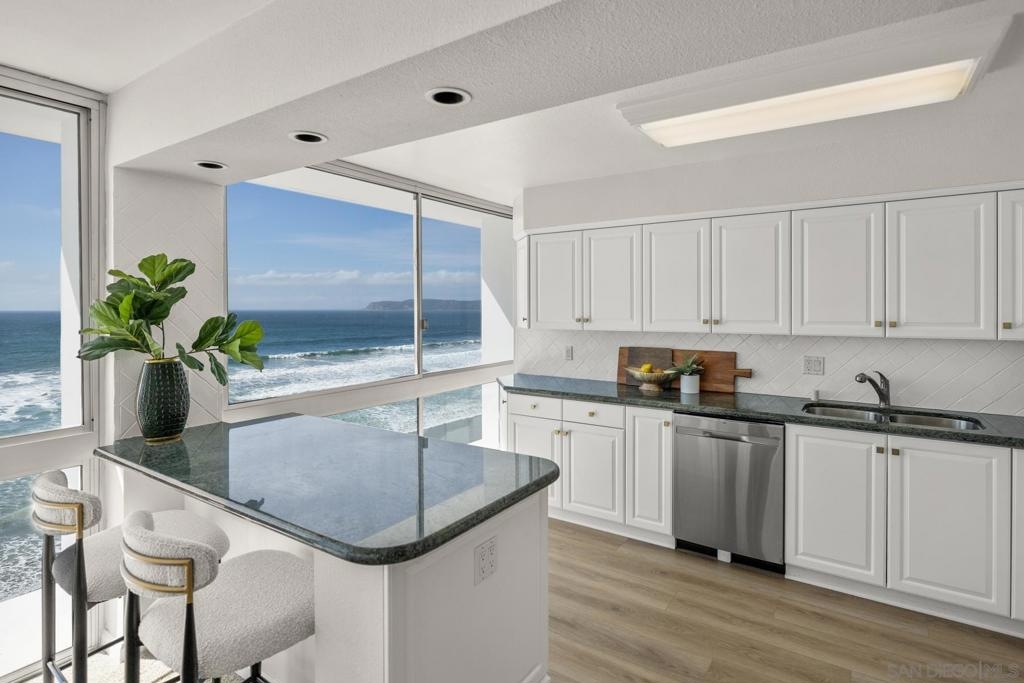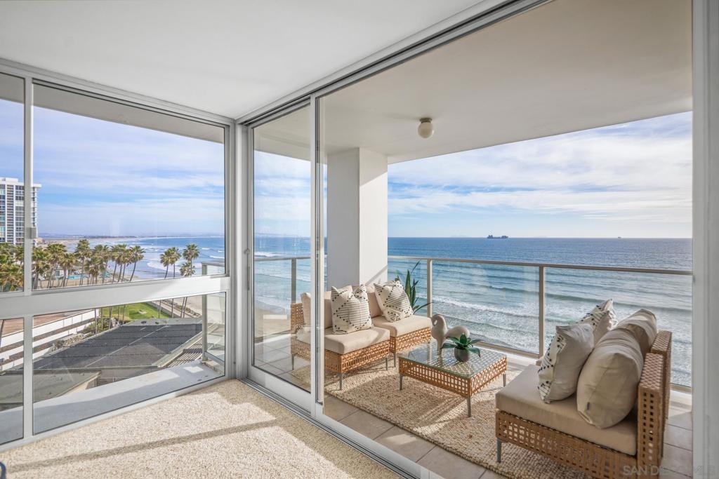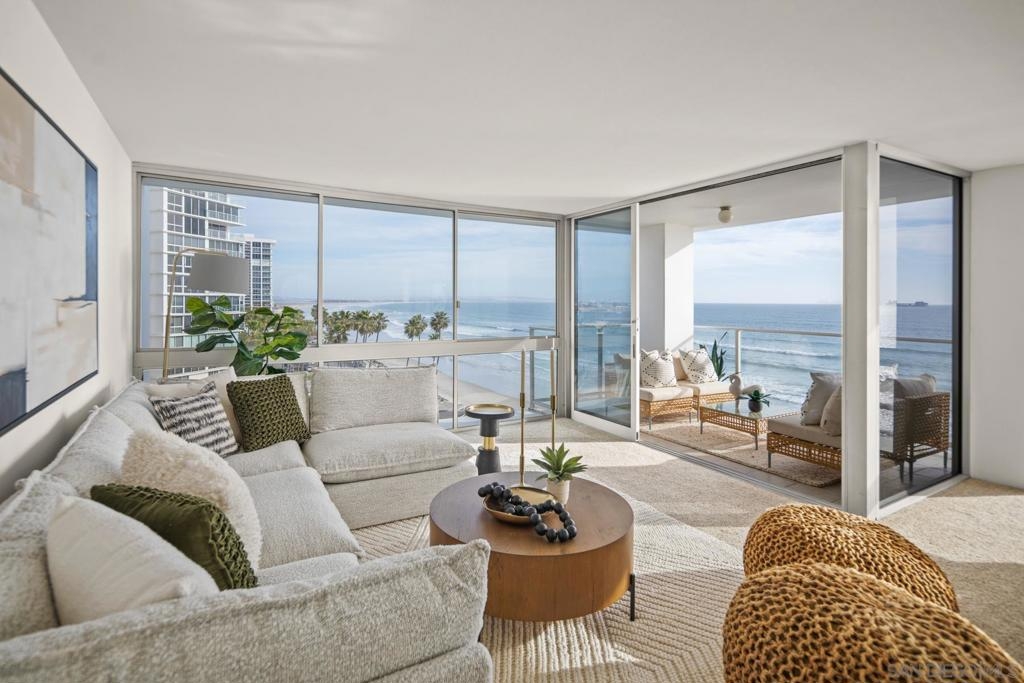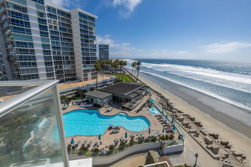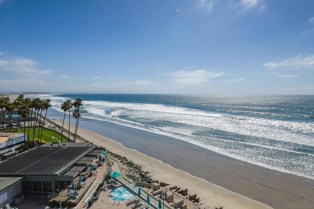 Welcome to oceanfront living in the Coronado Shores. Step into a world of breathtaking ocean views from this stunning corner unit in the highly coveted Las Palmas Tower at Coronado Shores. This rarely available, corner unit, won’t last! From the moment you enter, you’re greeted by panoramic pacific vistas from every room. The spacious wraparound balcony invites you to relax and soak in the sights and sounds of the ocean—perfect for morning coffee or entertaining against an unforgettable backdrop. This elegant residence features two bedrooms, two bathrooms, and in-unit laundry, plus an oversized primary bedroom closet, offering ample space for a built-in desk or even an expanded ensuite bath. Enjoy resort-style amenities, including pools, spas, tennis courts, pickleball, a fitness center, and a secure gated entry with a welcoming door attendant. Two dedicated parking spaces and a private storage unit add to the convenience of this exceptional home. Don’t miss this chance to experience luxury coastal living at its finest!