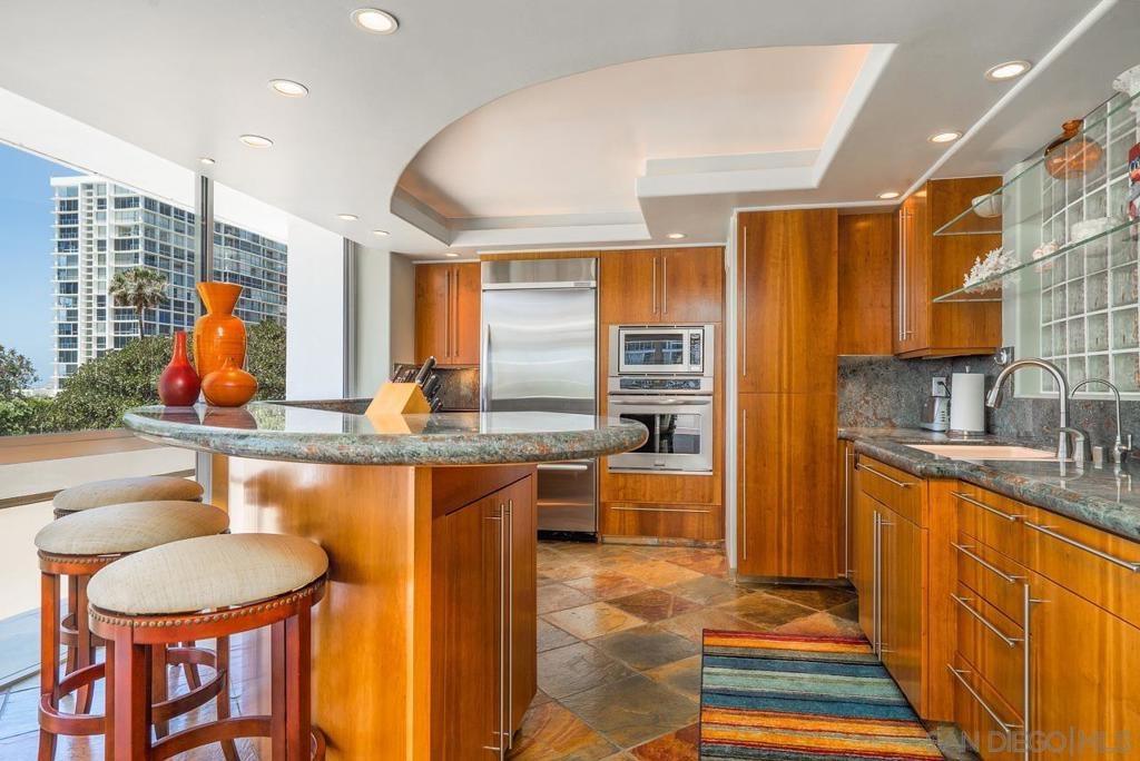 Do Not miss this incredible opportunity to own this ocean facing, unique oversized corner terrace level unit. Perfect for entertaining and relaxing with breathtaking ocean and City views. This spacious unit offers unparalleled coastal experience with an abundance of light. The chef’s kitchen features stainless steel appliances, exotic granite countertops and elegant wood cabinets with plenty of storage. Extra large master bedroom with walk in closet is your private oasis while enjoying ocean vistas. Remote operated motorized shades throughout. Large living area provides seamless transition between indoor/outdoor living. Originally a 3BR/3BTH unit, this condo was reconfigured to a large 2 bedroom, 2.5 bath and can easily be converted back to a 3/3 with room for expansion. This amazing property is ready for immediate move in, to begin your coastal experience!