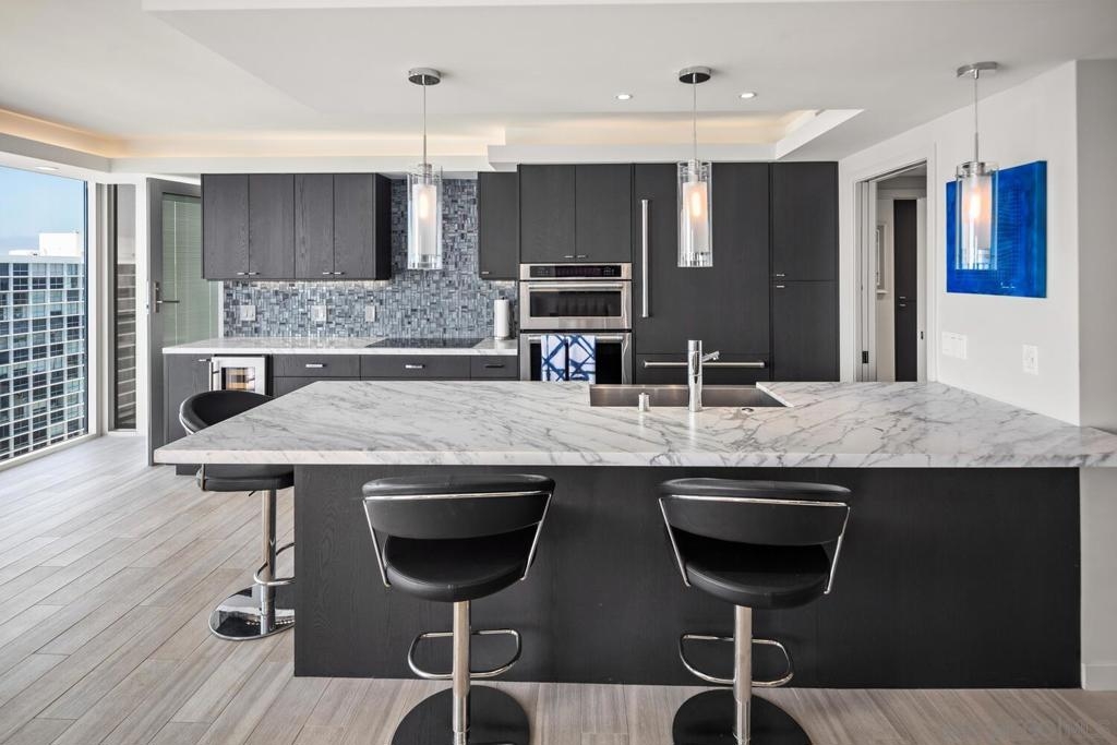 Wake up to the sound of soothing waves in this gorgeous ocean view Penthouse retreat. The split two bedroom floor plan offers amazing views from all rooms. The unit was fully remodeled with high-end finishes including Sub Zero, Wolf, and Bosch appliances. All windows and doors were replaced and feature electric shades. Beautiful Calcatta Gold marble covers the countertops and honed statuary marble on the bathroom floors and showers. You can see more in the supplement. Other features include a separate office space, a full-size washer/dryer, spacious closets, and a two-car tandem parking space. If you want to relax and enjoy your days at the beach, then you must see this unit. Offered furnished