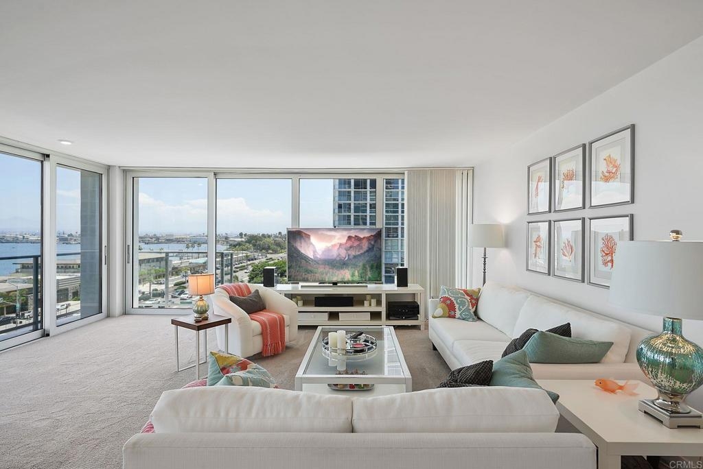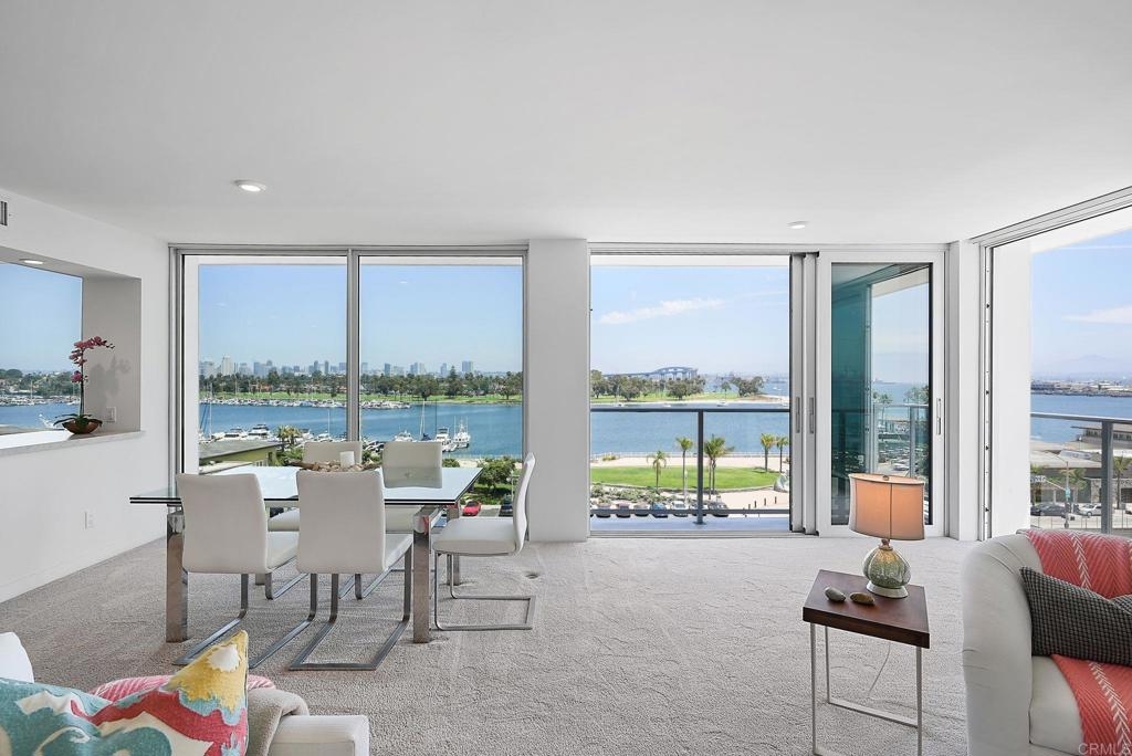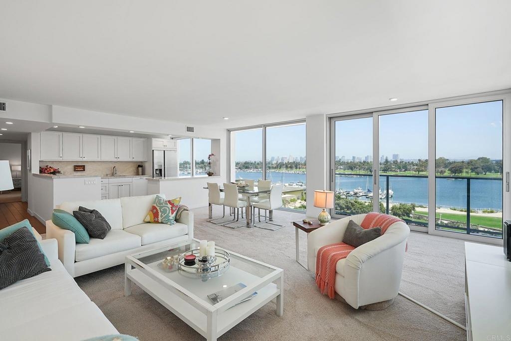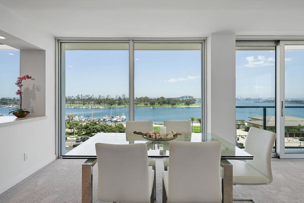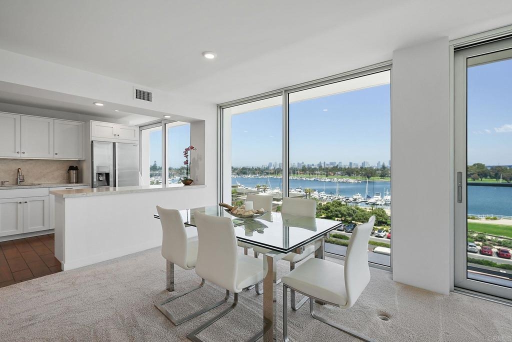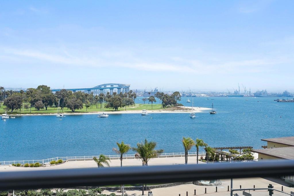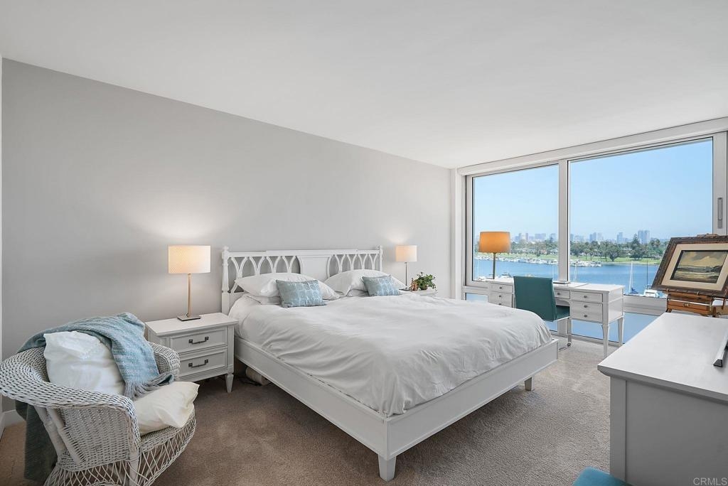 One of the best corners at The Shores, unobstructed and stunning San Diego Skyline, Glorietta Bay and Coronado Bridge views. Experience wonderful morning sunrises and great daylight, sit down in your living room to watch the boats go by. Corner living room windows also give whitewater Pacific Ocean views and Coronado Islands. Remodeled in 2015 with state of the art tinted and laminated sliding windows, custom cabinetry, custom porcelain tiles in foyer and bathrooms and hand made Taj Mahal Quartzite countertop in the kitchen. Includes highly desirable tandem garage parking spots, extra storage cabinets and secured storage cage with custom shelving. Care to say, this is one of the best views at The Shores.