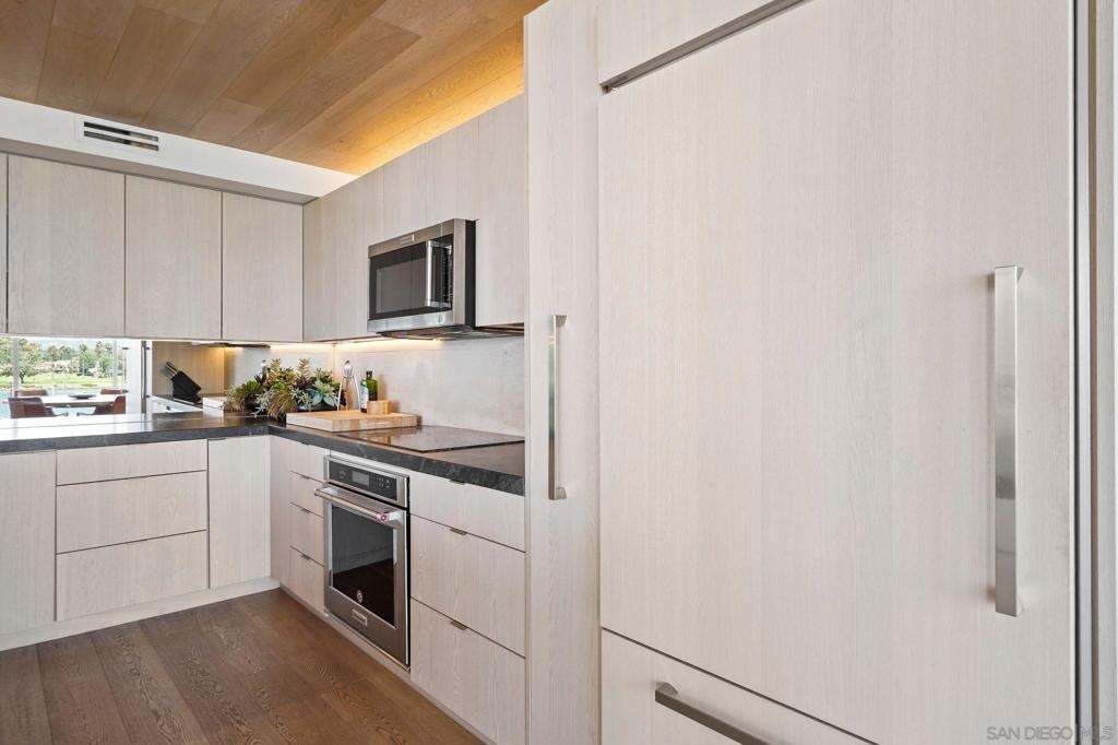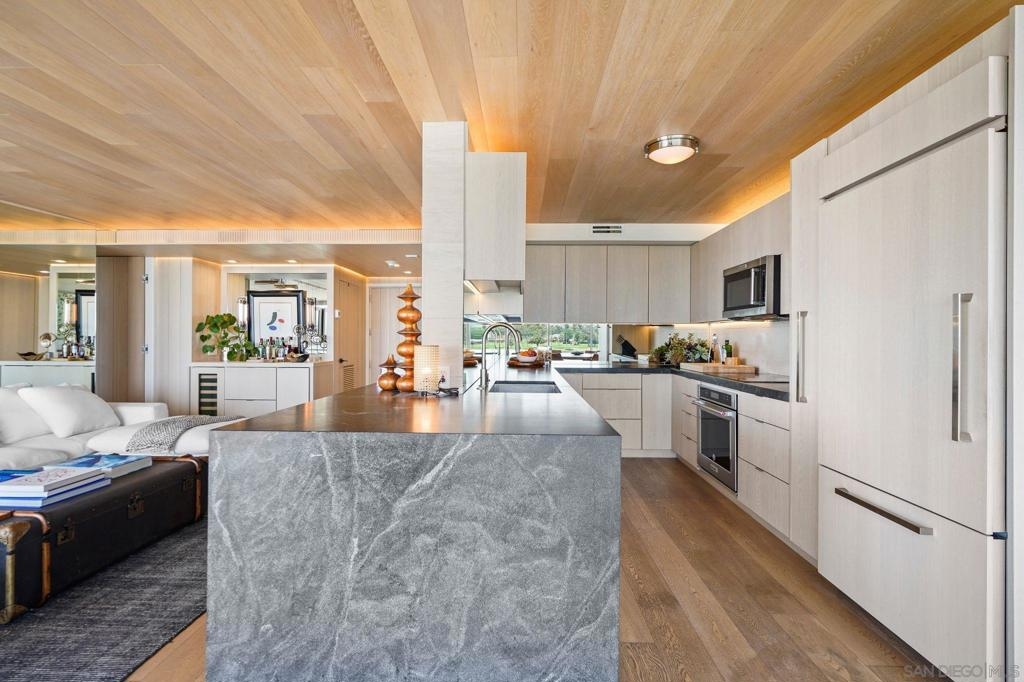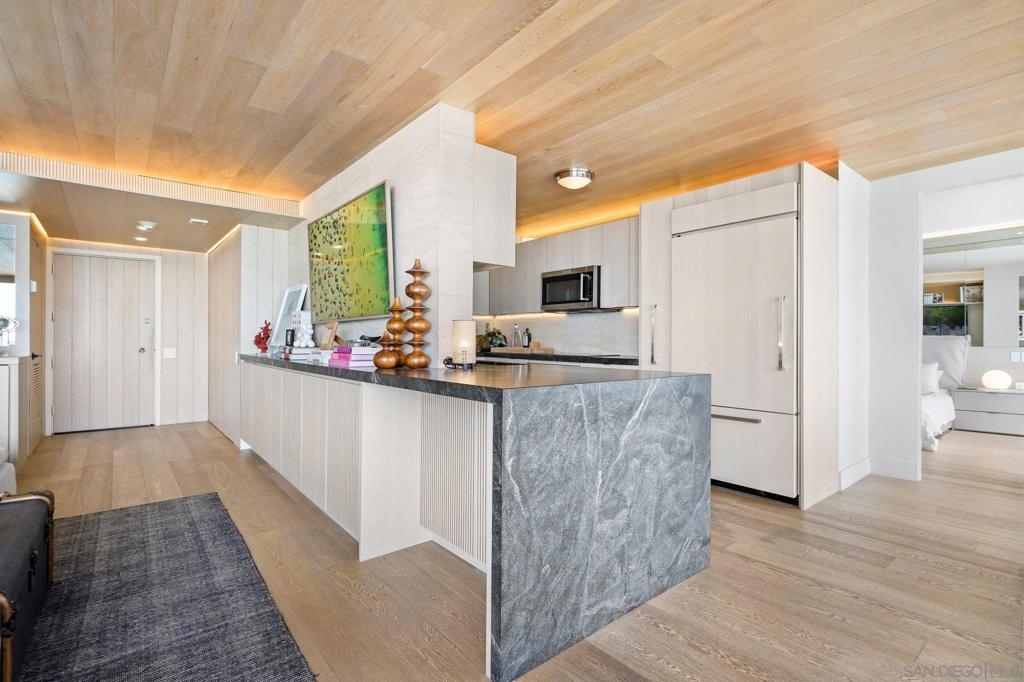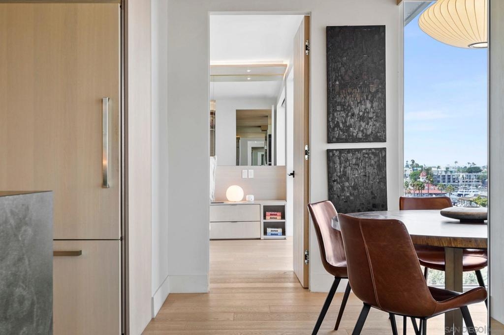 Remodeled with thought, care, and good taste, this unit is a true masterpiece. From luxurious custom-built wooden walls, ceilings, cabinets, and floors, to recessed lighting perfect for every occasion. A highly sought-after, split bedroom floor plan, gives you privacy in the bedrooms with a communal and open living space. The ebony crystal kitchen countertops and the limestone bar countertops bring elegance to the already sophisticated design. To top it off, enjoy panoramic views of the Coronado Bridge, the San Diego Skyline, the Coronado Bay, the Hotel Del, and a daily sunrise. The unit is equipped with Lutron dimmable lights and automatic blinds throughout. This unit is also offered semi furnished. Amenities include 4 oceanfront swimming pools, jacuzzis, BBQ's, spa, fitness center, 7 tennis courts, 2 pickleball courts, oceanfront clubhouse, 24-hr doorperson, security and just minutes away from the Hotel Del, restaurants, and shops!