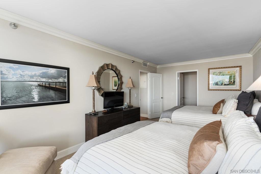 A unique opportunity to own one of the most sought-after floorplans at The Shores! Offering breathtaking views of the Pacific Ocean, Point Loma, and the San Diego skyline, this 3-bedroom Penthouse has gorgeous features like hardwood flooring, a custom maple wood kitchen with granite counters, a convenient layout with walk-in laundry room, and two parking spaces! El Encanto Tower has been recently remodeled and is situated at The Shores, next to the beach and the renowned Hotel Del! The Shores has 7 tennis courts, 2 pickleball courts, 4 oceanfront pools, a clubhouse for various events with a full bar and a fitness center with indoor jacuzzis and saunas! Come experience beach living at its finest!