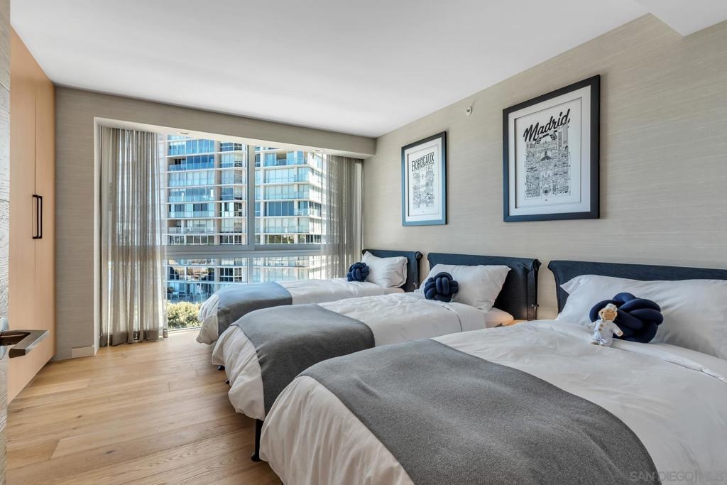 Step into luxury with this completely reimagined 3-bedroom, 3-bath condo offering breathtaking views of the bay, San Diego city skyline, and the ocean. From the moment you enter, you’ll be captivated by the sleek and sophisticated interior, featuring high-end finishes and meticulous attention to detail. This chic residence is truly a masterpiece of modern design and coastal living. Every surface has been thoughtfully upgraded, from the custom cabinetry and gorgeous countertops to the premium flooring and designer wall treatments. The open floor plan is perfect for entertaining, with a seamless flow that highlights the dramatic views from nearly every room. Enjoy the convenience of two parking spaces and the unparalleled amenities of the Coronado Shores, including pools, tennis courts, a fitness center, and direct beach access.