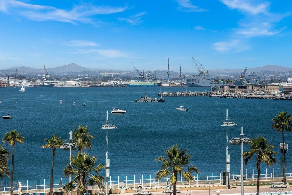 Enjoy gorgeous, unobstructed, panoramic forever views from every room in this turn key, El Mirador stunner! Take in the sights & activities of Glorietta Bay, San Diego downtown skyline, Coronado Bridge, San Diego Bay, Coronado golf course, 4th of July fireworks & an ocean peek from the master bedroom. Unit includes double pane windows/slider, beautiful tile floors throughout, Sonos sound system, brand new Samsung bespoke-line fridge & dishwasher, Samsung frame Tvs in every room, (see supplemental remarks) Nest wall system, electric privacy/blackout screens in living room and guest bedroom, custom made tamarind wood dining table w/ light edge, full massaging bed in master, CAT-5 coaxes in every room, Google fiber, dish TV, full size LG smart washer/dryer, & all of the resort-style amenities of the Coronado Shores community (pools, tennis courts, pickle ball, club houses, BBQs).