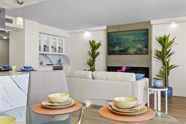 This unit has the best of both worlds! Full bay view and a partial ocean view. Fully remodeled unit from all aspects with higher end finishes. New sliding panoramic glass doors that open to give you the unobstructed bay, Coronado Bridge and the Downtown skyline. Enjoy the 4th of July fireworks from anywhere in the living room or primary bedroom. New HVAC system, wall finishes, plaster finished fireplace with operable electric wall mounted units. Custom bar with it's own wine cooler and sink. LVP flooring throughout with custom tile finishes in the bathrooms. The panoramic windows also have automatic shades. The kitchen boasts a custom island with new appliances and high quartz with a waterfall finish on both ends. Enjoy the luxury of having 4 large swimming pools, 8 tennis courts, 2 clubhouses, a sauna and a gym all included in the association. This unit is 100% move-in ready and there is a lease to own option.