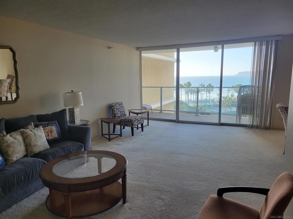 Absolutely stunning views of the waves rolling onto the white sand beach and the beautiful blue ocean to Point Loma and beyond from this largest of all one bedrooms built in all ten buildings at Coronado Shores. When you open the front door the view explodes in a dramatic fashion- this location will impress! 150 square foot ocean view balcony may be enclosed and made a part of the already large living area making this one bedroom larger than most two bedroom condos being built today. The 12x18 master bedroom features a nice large walk in closet and there is lots of storage space throughout. An extra half or three quarter bath may be added and there are a couple of areas that avail themselves for this purpose. Make this spectacular ocean location your carefree beach house today! Equipment: Fire Sprinklers,Garage Door Opener, Range/Oven, Washer Sewer: Sewer Connected Topography: LL