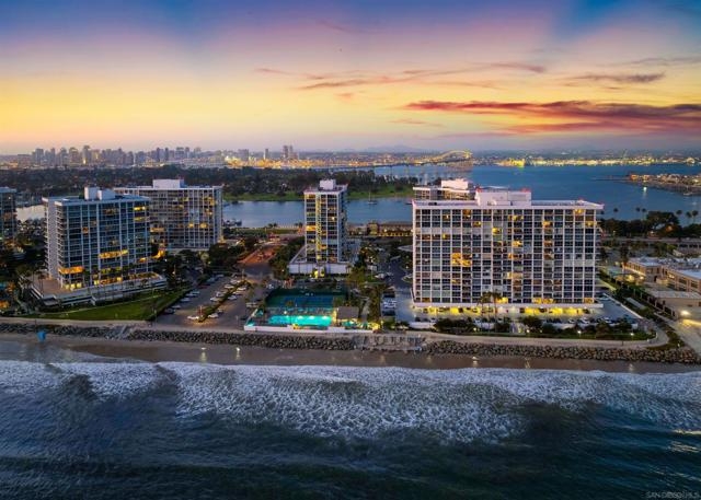 Experience the pinnacle of coastal sophistication in this extraordinary 11th-floor residence within the coveted El Camino Tower at Coronado Shores. Rarely available and perfectly positioned, this elegant condominium showcases captivating, panoramic views that sweep across San Diego Bay, the marina, downtown skyline, Coronado Bridge, and the shimmering Pacific Ocean—all enjoyed from your private living room balcony. Just mere feet from the sand, this home offers an unparalleled blend of relaxed beachfront living and refined luxury. Set within the exclusive enclave of Coronado Shores—comprising ten distinguished residential towers—El Camino Tower provides a lifestyle defined by service, serenity, and sophistication. Residents enjoy 24-hour doorperson service, beautifully maintained grounds, and resort-inspired amenities managed by the L&R Committee, ensuring an elevated living experience. Each tower operates under its own association, combining privacy with the prestige of a shared luxury community. Immerse yourself in the ambiance of a world-class oceanfront resort with access to championship tennis and pickleball courts, multiple swimming and therapy pools, a state-of-the-art fitness and spa center, and a private beach club. The Roeder Pavilion and Beach Clubhouse offer spaces for exclusive gatherings, live entertainment, and social events that embody the Coronado lifestyle. Neighboring the world-renowned Hotel del Coronado, this iconic community fronts the Pacific Ocean and offers breathtaking vistas stretching from the Vallecitos Mountains to Point Loma. Minutes from the Coronado Yacht Club, Marina, and the lush 18-hole Coronado Golf Course, as well as the charming boutiques and restaurants of Coronado Village, this prime location also provides effortless access to downtown San Diego, the airport, and the international border. Live every day as if you’re on vacation—where timeless elegance, world-class amenities, and awe-inspiring views define your everyday life at Coronado Shores.