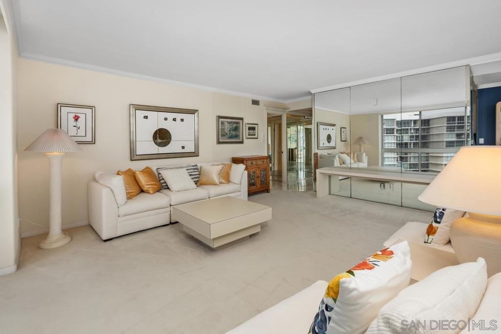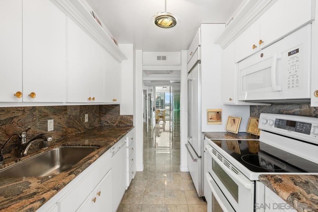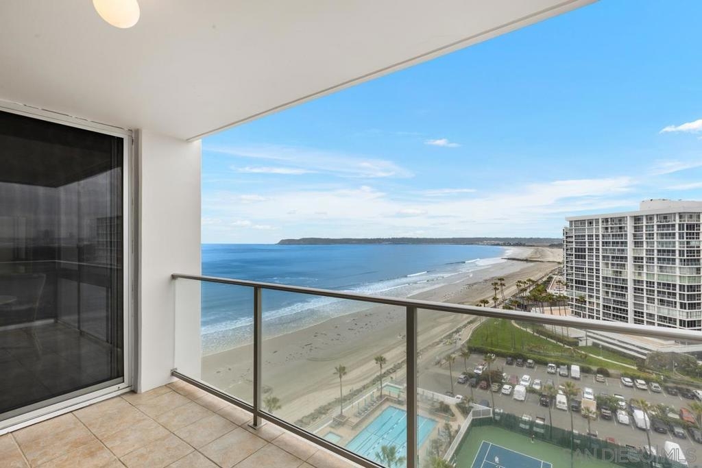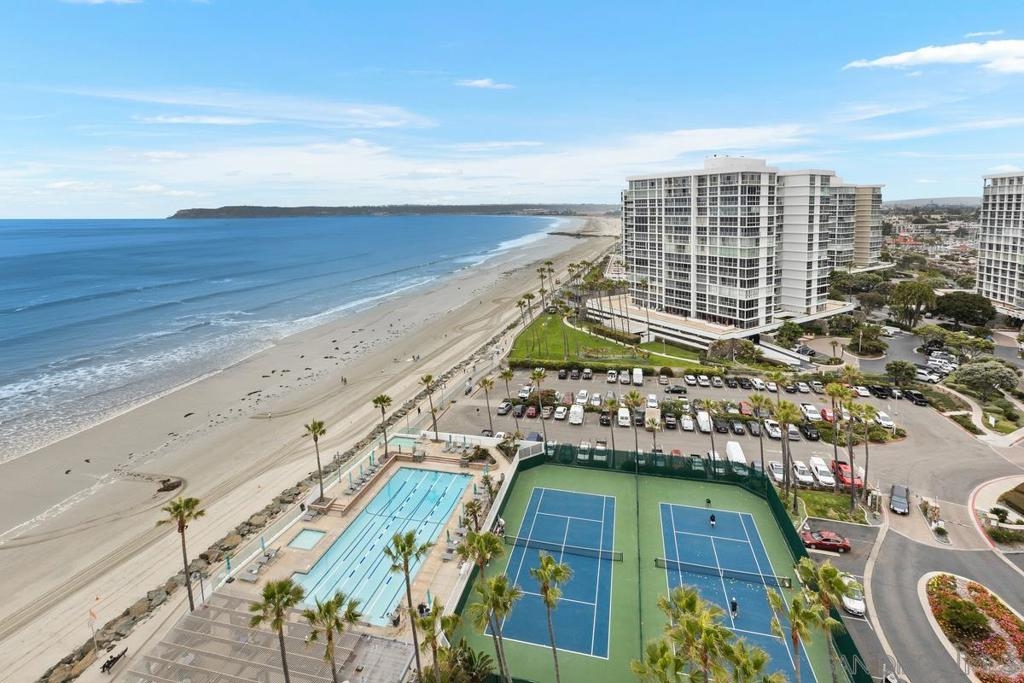 Enjoy stunning postcard views from this desirable high floor two bedroom two bath corner unit located on the 15th floor of El Camino tower. From breathtaking whitewater ocean views to panoramic bay views of the San Diego skyline, this corner unit is all about the captivating views from the Shores. This property features two parking spaces (tandem) an in unit stackable Bosch washer and dryer, and Fleetwood windows. Amenities at The Coronado Shores include 4 swimming pools, tennis courts, pickleball courts, workout facilities and more.