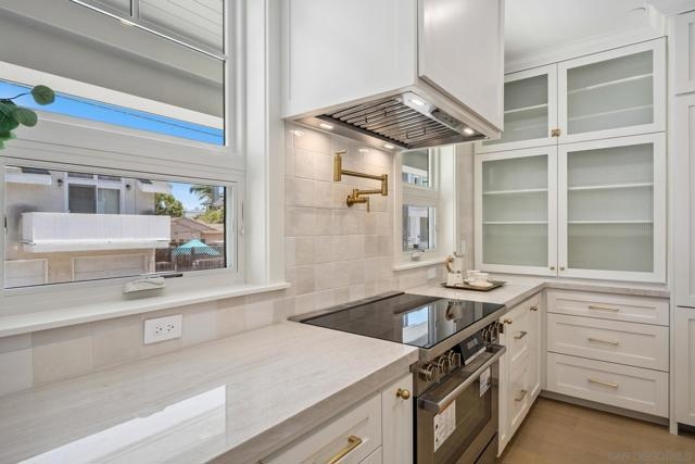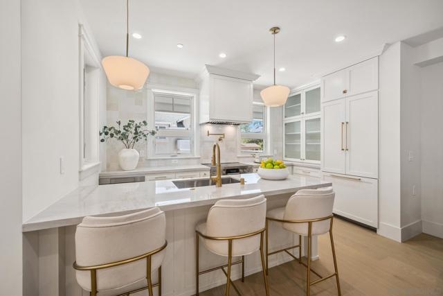 Live the Coronado lifestyle in this stunning newly built coastal retreat, meticulously designed for seamless everyday living and sophisticated entertaining. This 3-bedroom, 3.5-bath residence features a spacious open-concept floor plan that flows effortlessly from indoor comfort to outdoor charm. Relax on the inviting front porch beside the cozy outdoor fireplace, or ascend to the expansive rooftop deck to savor panoramic views—perfect for sunset cocktails, weekend gatherings, or quiet moments under the stars. Inside, timeless elegance meets modern functionality with warm neutral tones, exquisite quartzite countertops, and top-of-the-line Bosch appliances. Every custom bathroom is adorned with refined gold accents, adding a tasteful touch of luxury throughout. Thoughtfully equipped for today and tomorrow, the home includes installed solar panels for energy efficiency and is pre-wired for a future elevator—blending sustainability with long-term versatility. From its coastal charm to its elevated finishes, this home offers a rare opportunity to enjoy island living at its finest.