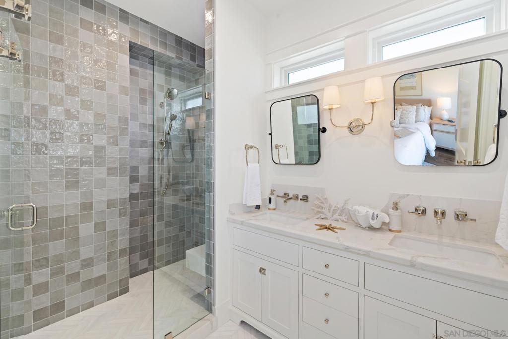 This newly constructed home features a spacious open-concept design, offering 3 bedrooms and 3.5 baths of luxurious living space. Enjoy the ease of an elevator, connecting access to three levels of the home. For those who love to entertainment, the front porch with a cozy fireplace and a rooftop deck with breathtaking panoramic views provide the perfect setting. Interior features offer top-of-the-line appliances by Bosch, polished nickel finishes, accentuated by personalized and custom bathrooms with delicate touches of gold and matte black, neutral tones, and quartzite counters throughout the home. There are solar panels for energy efficiency. Experience the best of coastal living, your dream home in Coronado awaits! Explore the neighboring property at 760 F Avenue, also available for sale.