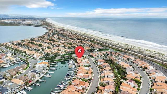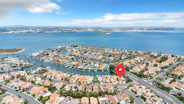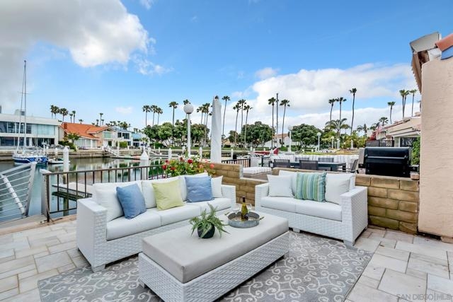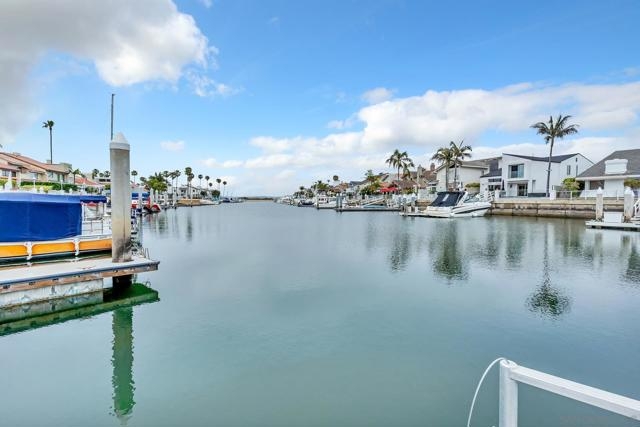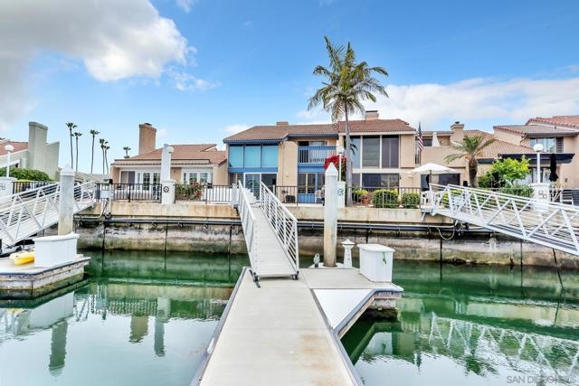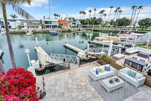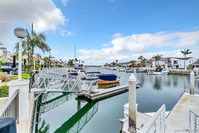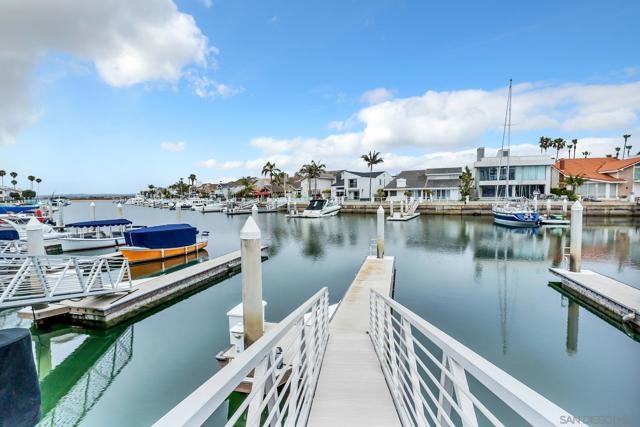Channel Views from almost every room! The gated front entry opens into a home filled with natural light. Cathedral ceilings, tile and wood floors throughout, sleek kitchen with wine fridge and pantry, living room with fireplace, den and 1 BD on the first level. Large master suite with fireplace and private lanai overlooking the bay. A tiled patio extends from the living room out to the dock! Private boat dock with 37ft boat slip. Enjoy the coastal life in a luxury waterfront home with exceptional views and unparralled amenities. The Coronado Cays is a unique community with boat slips, bayviews, swimming pools, tennis courts, parks. Surrounded by water. Across the highway from the Pacific Ocean!