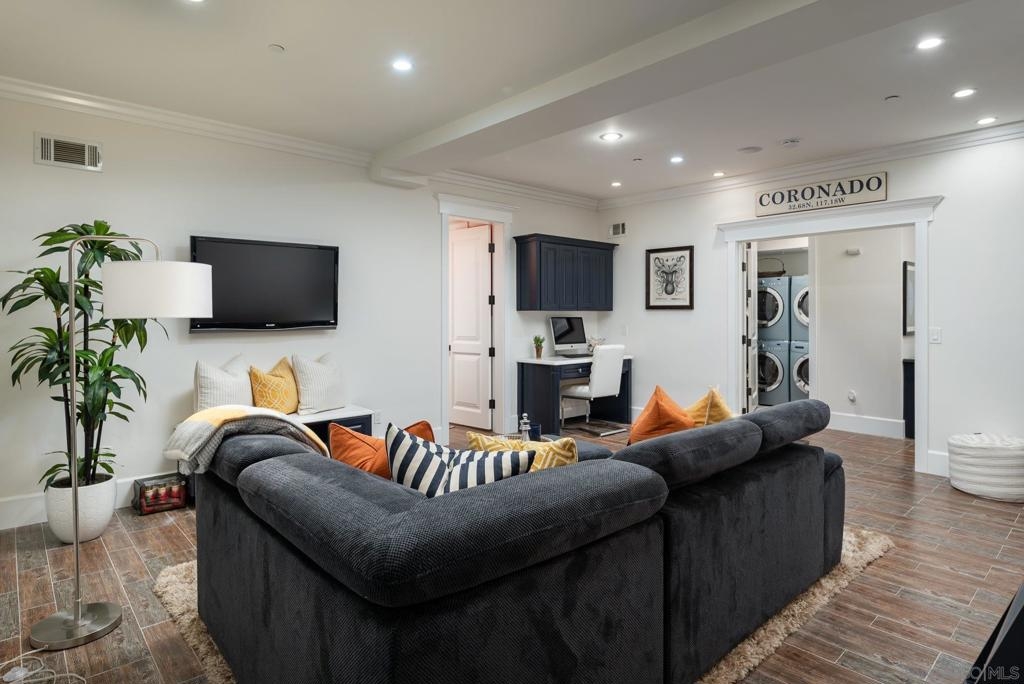 Welcome to 901 10th St., a stunning and impeccably maintained townhome with many designer touches and a prime location - less than three blocks to the beach and downtown Coronado! (and NO HOA fees.) A unique rounded turret stairwell with custom leaded glass windows leads to the combined living and dining room with twin balconies overlooking mature trees and beautiful foliage. Chef's kitchen with high end appliances, wine cooler, and butler's pantry. Office with built-in guest bed and a spacious roof top deck with fireplace and skyline views. Distinctive lower level with guest bedrooms, window wells with custom art, and double washer/dryer. Ideal for a primary residence or second home. Property is considered a "cloud" condo with no HOA fees. Many designer touches and finishes throughout. High ceilings, custom wrought iron railings, outdoor shower and beautiful lush landscaping. Prime location !
